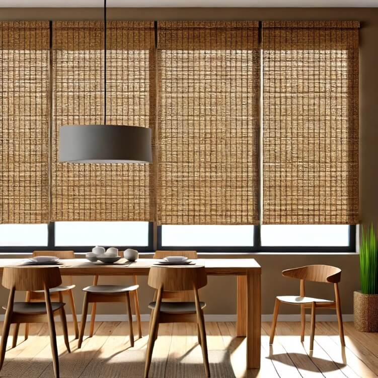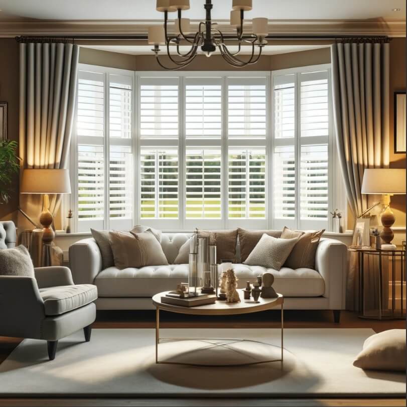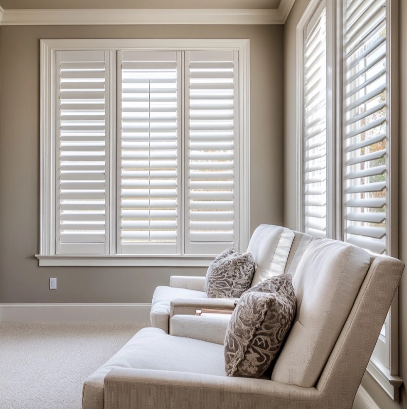Tall, dark plantation shutters offer light control, a sleek modern look, and filtered sunlight with patterned shadows This image is AI-generated and intended for inspirational purposes only; it may not be completely accurate. Efficient insulation is key to maintaining indoor comfort throughout the year. For homeowners looking to create a cozy, energy-smart living space, window